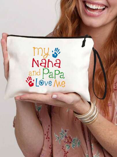 "My Nana And Papa Love Me" New Cosmetic Bag, Storage Bag, Colorful Letter Printed Coin Bag, Clutch Bag, Portable Handbag, Suitable For Gift Surprise Travel Small Items Bag, Lightweight Cosmetic Storage Bag, Travel Toiletries Zipper Bag - Beige - View 1