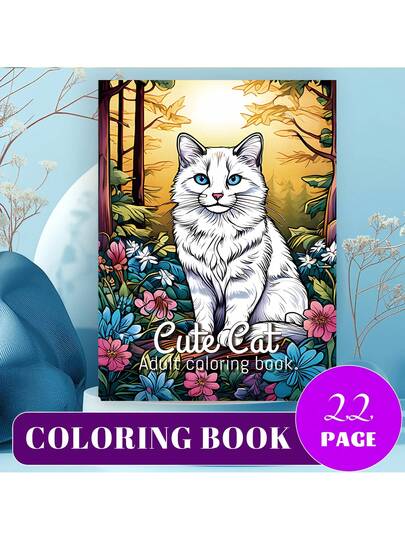 [NEW Cute Cat Coloring Book] 1pc Original Coloring Book , 22 Pages Single-Sided Printing, Clear Lines And Exquisite Patterns, Ideal For Relaxation | Perfect Gift For New Year, Valentine's Day, Christmas, Birthdays, School Holidays, Perfect For Adults & Teens & Child - Multicolor - View 1