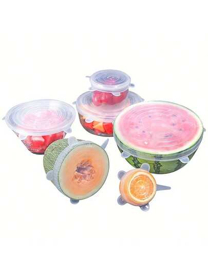 [Reusable Silicone Lids] 6-Pack Reusable Silicone Elastic Lids, Food Storage Bowl Covers, Dishwasher & Freezer , Kitchen Accessories - Clear - View 1