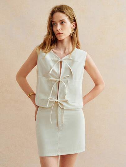 Écloséra Retro Corduroy Check Color Ladies Summer Two Pieces Beach Holiday Outfit - Apricot - View 5