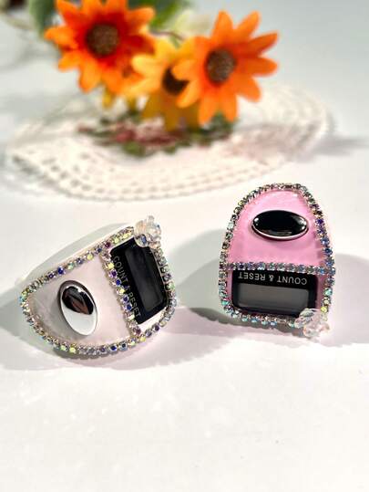 0-99999 Rhinestone Flower Ring Tally Counter Card, Portable Compact Lightweight Colorblock Minimalist Prayer Beads Tally Counter, Multi-Purpose Counter For Middle Eastern Arabic Prayer, People Counting And More - Multicolor - View 17