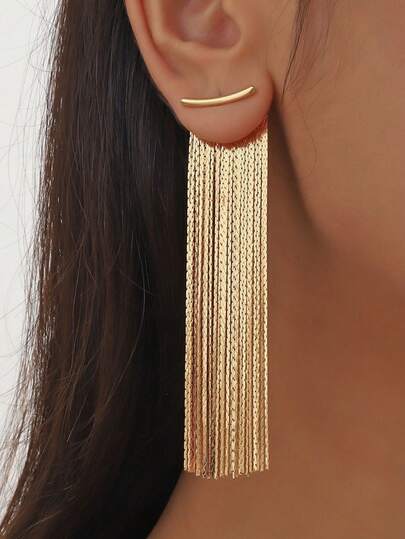 6. 1 Đôi bông tai tua rua dài màu vàng thanh lịch tối giản thời trang