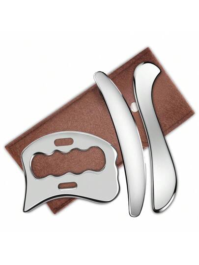 1/2/3pcs Stainless Steel Gua Sha Tools, Muscle Scraping Gua Sha Massage Tool, Body Massager, Soft Tissue Massage Tool, 304 Stainless Steel Material, With Storage Bag - Multicolor - View 1