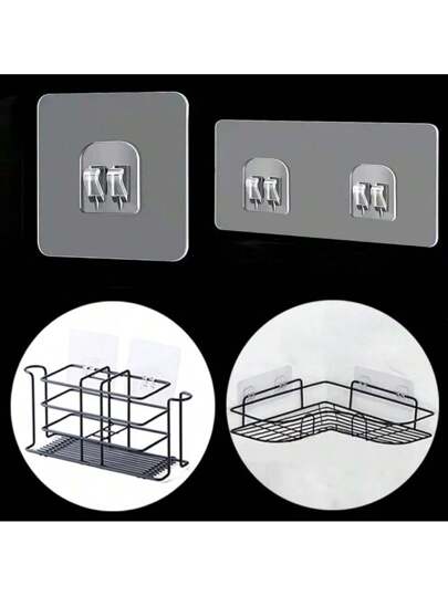 1/2/4/8/16pcs Transparent Hanging Shelf Hook, Wall Storage Rack Fixing Patch, Self Adhesive Snap Hook For Storage Basket Fixing, Utility Sticker Accessories For Bedroom Bathroom Kitchen Living Room - Multicolor - View 19