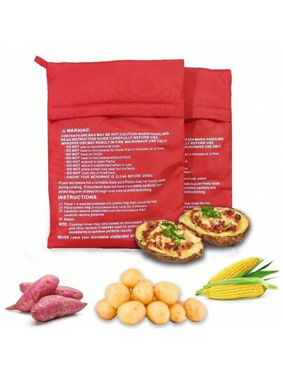 1/2/5pcs Microwave Potato Bags, New Red Washable Microwave Potato Bags, Baked Potato Microwave Cooking Bags, Quick Baking Bags Kitchen Tools, Reusable Microwave Potato Cooking Bags, Delicious Potatoes In Just Minutes, Kitchen Gadgets, Kitchen Accessories, Suitable For Christmas, Halloween, Thanksgiving And More - Red - View 1