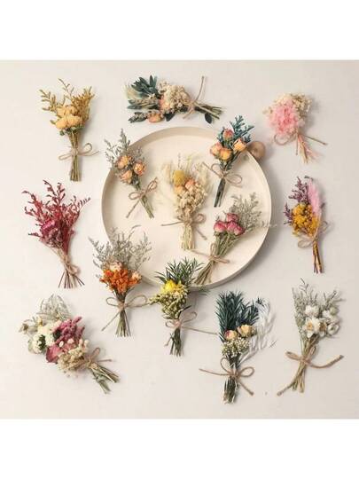 1/2/6/12/20 Pcs Mini Dried Flower Bouquet,Christmas Decoration, Bridesmaid Proposal Flower Girl Gift Box,Boho Wedding Table Centerpieces,Small Dry Pampas Grass For Vase Decor, Tiny Dried Flowers For Birthday Cake Decor - Multicolor - View 1