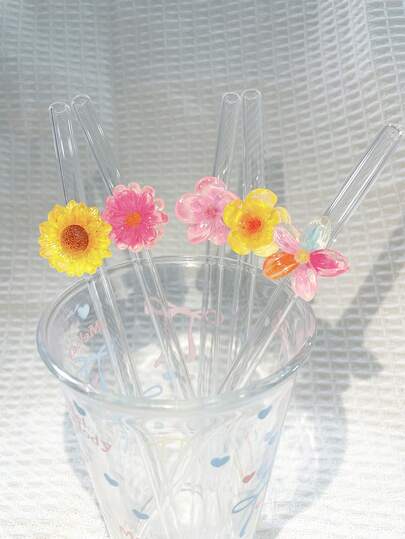 1/2/6pcs Beautifully Designed, Reusable Straws, Glass Straws, Perfect For Smoothies, Milkshakes, Milk, Tea, Juices, Festivals Accompaniment Gifts - Multicolor - View 14
