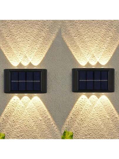 1/2PCS 6/8LED Cool/Warm Light Outdoor Solar Wall Lamp, Patio Garden Decor Sunlight Lantern - Convex mirror wall lamp - View 1