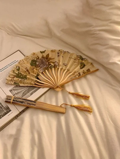 1/2PCS Folding Bamboo Fan For Girls With Tassel & Flowers, Chinese Traditional Costume Dance Prop Vintage,Girls' Bamboo Folding China-Chic Small Fan Tassel Flower Props Han Costume Ancient Costumedance Bamboo Fan,Elegant, Comfortable And Gorgeous Style,Photography Props Can Be Carried And Folded With You In Summer,For Weddings,Gift,Wedding Parties,For Parties, Proms, Outings - Yellow - View 1
