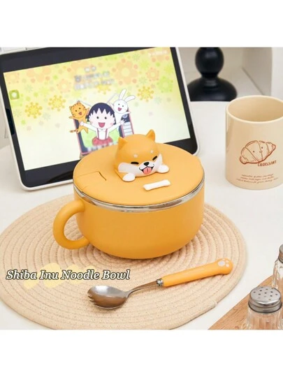 1/2pcs 1200ml Instant Salad And Noodle Bowl SUS304 Stainless Steel Convenient Tableware Large Capacity, Cute Cartoon Animal Eating Instant Noodles, Pasta Bowl,Breakfast Lunch Dinner, Thanksgiving, Back-To-School Season,School Supplies - Multicolor - View 1