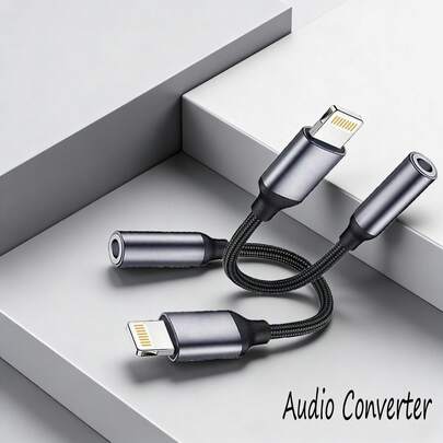 1-2pcs 3.5mm Audio Converter, Lightning To Headphone Jack Audio Adapter Cable, Fabric Auxiliary Audio Cable Compatible With IPhone 14/13/12/11/IPad, Plug And Play - Black - View 1