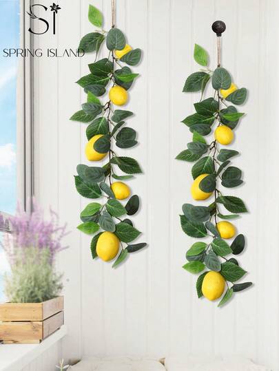 1/2pcs Artificial Lemon Vine Plant Decor With Green Leaves, Made Of Polyester Fiber, 63cm/24.8in, 2 Large Fruits, 3 Small Fruits, Artificial Plant, Artificial Flower, Room Decor, Tabletop Decor, Garden Decor, Restaurant Decor, All Season Decor, Wedding Decor, Graduation Decor, Valentine's Day, Home Decor, Kitchen Decor - Green - View 1
