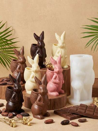 1/2pcs Easter Basket Rabbit Chocolate Mold, DIY Standing Rabbit Cake Mold, Pudding Silicone Mold - Transparent - View 1