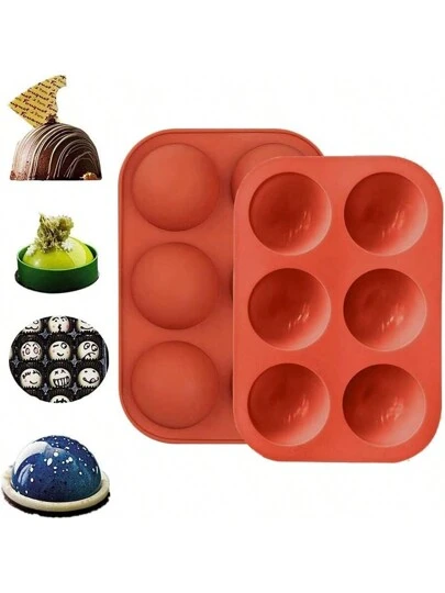 1/2pcs/Set 6-Cavity Half Sphere Silicone Cake Molds, Non-Stick, High-Temperature Resistance, Easy-Clean Bakeware For Making Hot Chocolate Bombs, Cakes, Jellies, Dome Mousses, 7.68*5.31 Inches - Brick Red - View 2