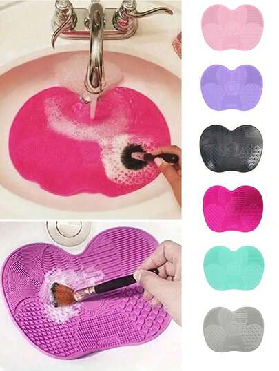 1/2pcs Silicone Makeup Brush Cleaning Mat With Suction Cup, Portable Makeup Brush Cleaner Tool, Apple-Shaped Silicone Makeup Brush Cleaning Pad, Suitable For Makeup Brushes, Makeup Sponges, Powder Puffs, Ideal For Travel, Home, School, Dorm, Vacation, Party, Etc. - Multicolor - View 53