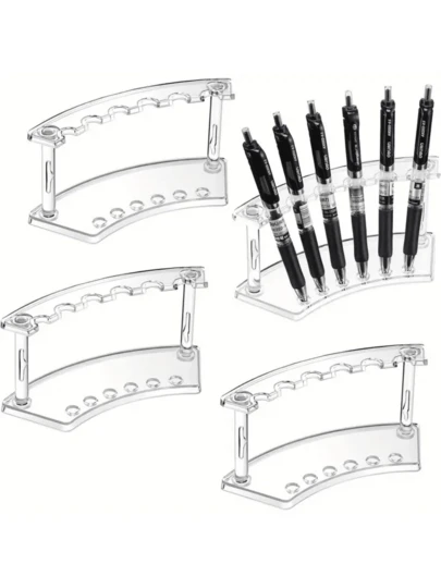 1/3/6pcs Plastic Pen Holder, 6-Slot Pen Display Stand, For Ballpoint Pens, Markers, Fountain Pens, Eyebrow Pencils, Makeup Brushes, Home/Office/Store Storage Organizer, Transparent Craft Display Rack, Desktop Display Stand, Portable Office & Home Storage Solution, Office Supplies & Accessories, Back To School Gift, Desk Organizer, Cosmetic Organizer, Best Gift For Coworkers, Classmates, Teachers, Friends, Relatives - Multicolor - View 10