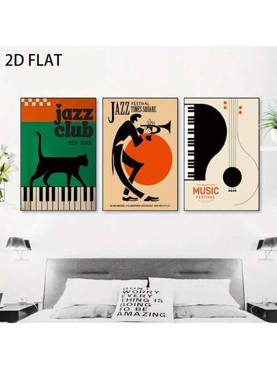 1/3PCS Blowing Jazz Men's Cartoon Style Oil Paintings, Canvas Paintings, Wall Art Decor, Modern Musical Instruments, Piano Guitars, Realistic Art Prints, Posters, Pictures, Room Decor, Corridors, Study Rooms, Bedroom Wall Decor, Autumn Decor(No Frame) - Multicolor - View 19
