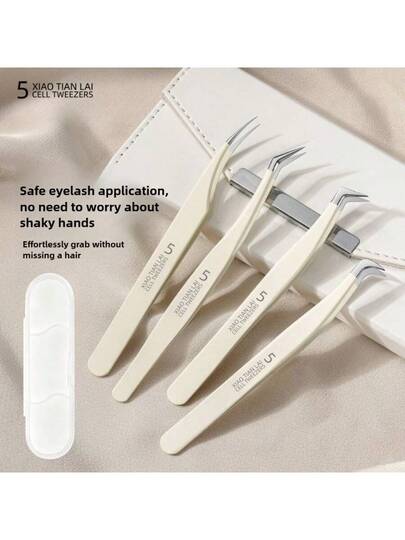 1/4pcs Milky White Eyelash Curler Tweezers False Eyelash Extension Tools Set, Gold Feather Clip, Professional Eyelash Makeup Tools - Multicolor - View 1