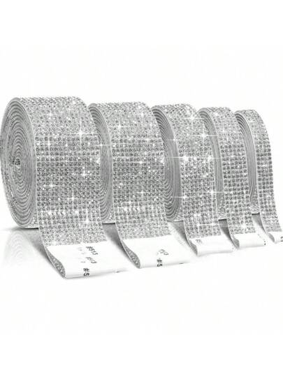 1-5Rolls Self Adhesive Crystal Rhinestone Rhinestone Roll Ribbon Bling Gemstone Strips Sticker Rhinestone For Craft With 2 Mm Rhinestone 4.5 Yards, DIY Event Car Phone Decoration (Silver), Stickers, Wall Decal, Vinyl Decal For Home Decorations, Spring Decoration Items Refresh Your Home, Festival Decoration Stickers Gifts Birthday Graduation Mirror Mirror Wall Wall Decor Room Decor Wall Mirror Mirror For Room Bathroom Decor Living Room Decor - White - View 1
