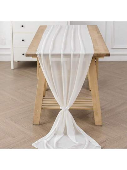 1/6pcs Chiffon Table Runner, Transparent Longer Table Cloth Suitable For Wedding Bride, Baby Shower, Bachelorette Party, Birthday Party, Holiday Decoration - Ivory White - View 1