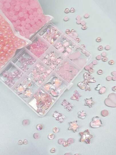 1 Box High-Quality Transparent Pink Acrylic Bead DIY Kit, Includes Various Beaded Charms Of Butterflies, Hearts, Pentagram, Flowers, Rabbits And Bears, Ideal Gift For Girls To Make Bracelets, Necklaces And Earrings - Baby Pink - View 1