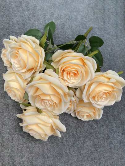 1 Bundle Artificial Roses Flowers 9 Heads Arrangement Silk Bouquet For Home Office Party Wedding Decoration - Champagne - View 1