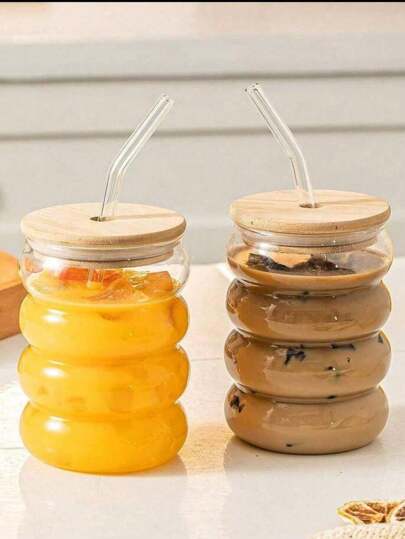 1 Clear Glass With Glass Straw With Lid, Caterpillar Handle, Simple Creative Americano Mug For Breakfast - Clear - View 1