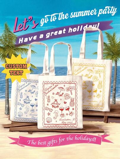 1 Custom Canvas Tote Bag, Beach Bag, Seaside Bridal Party Gift, Nautical Beach Bridal Bag, Cocktail Party Gift, Foldable Canvas Bag, Unique, Lightweight, Large Capacity, Casual, And Stylish, Suitable As A Tote Bag, Shoulder Bag, Casual Bag, And Shopping Bag. - Multicolor - View 1