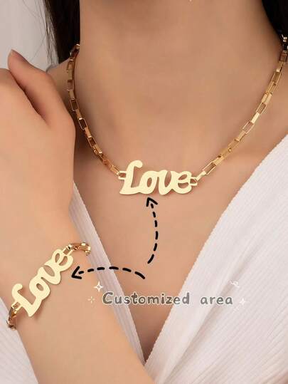 1 Customized Aomogo Stainless Steel Bracelet And Necklace Set With Love Pendant, Necklace, And Pendant, Romantic Ladies' Anniversary Jewelry Gift - Multicolor - View 2