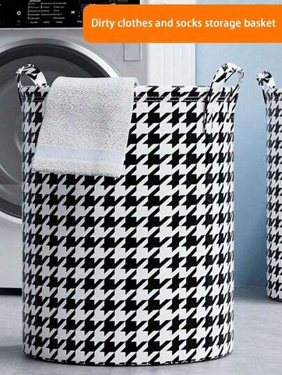 1 Large-Capacity Laundry Basket With Houndstooth Pattern For Bedroom And Laundry Room Decor, A Spacious And Durable Hamper Designed For Everyday Laundry, Clutter Control, And Stylish Organization In Fall-Ready Interiors; Ideal For Closet Corners, Dorm Rooms, And Living Spaces, With Classic Monochrome Contrast To Elevate Seasonal Home Styling And Coordinate With Cozy Textiles - Multicolor - View 1