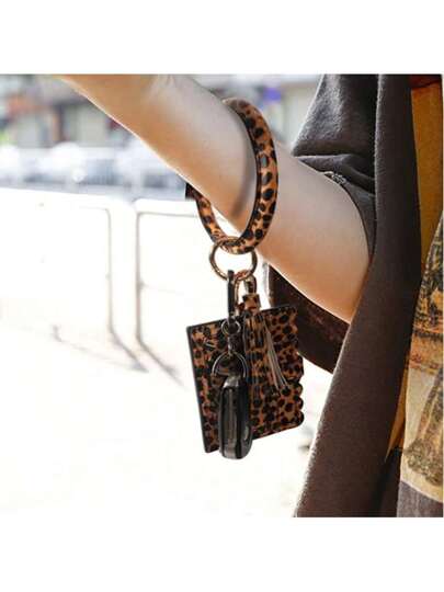 1 PC Bracelet Fringe Card Bag Portable Creative Small Wallet Fashion Simple Mini Small Wallet Gift Coin Wallet Ultra-Thin Card Bag Fashion Item Key Hanging Multi-Purpose Card Bag Leopard Print For Women Wallet Mini Wallet Purse Wallet Wristlet Wallet - Multicolor - View 1