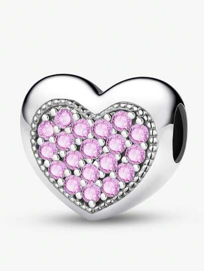 1 PC Fashionable Sparkling Double Row Of Diamond Hearts Pendant Beads Charm Suitable For Bracelets DIY Women's Jewelry - Style 7 - View 1