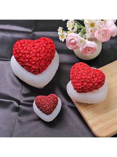 1 PC Silicone Heart Rose Flower Design Candle Wax Melt Mold, Aromatherapy Soap Making Mold, Valentine's Day Crafting Supplies - White - View 1