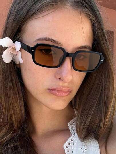 1 PC Women's Rectangle Frame Fashion Glasses,Vintage Star Print Y2K Glasses Perfect For Daily Use And Outdoor Activities - Multicolor - View 11
