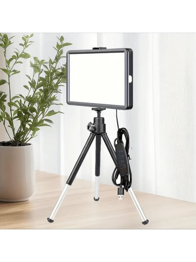 1 Pack 6 Inch Fill Light With Two Sections Telescoping Tripod Stand, Camera Photo LED Video Panel Fill LampLight, Lighting For Live Stream Photo Studio Makeup Meeting Selfie Photography - Black - View 1