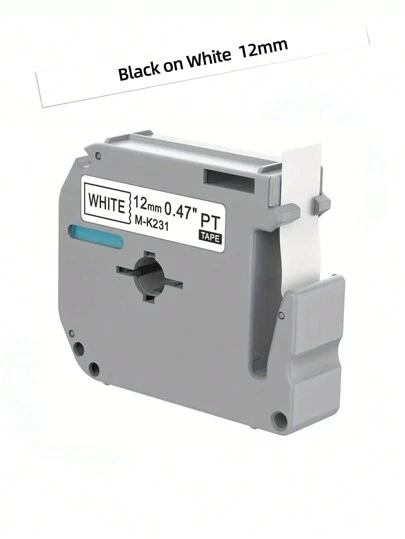 1 Pack Compatible Label Tape Replacement For Brother P Touch M Tape M231 MK231 M-K231 12mm 0.47 Inch Compatible With Brother P Touch PT-M95 PT-90 PT-70 PT-65 PT-85 Black On White, 26.2 Feet - Black Text On White Background - View 1