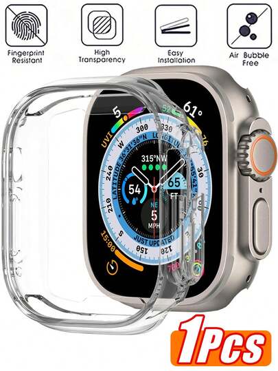 1-Pack Compatible With Apple Watch Series 10 46mm Case, [HD] Ultra-Thin Tempered Glass Screen Protector, All-Around Hard PC Glossy Cover - Clear - View 1