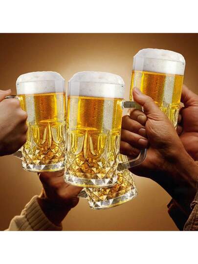 1-Pack Large-Capacity Craft Beer Glass - Glacier Cup With Bark Texture, Handle, Thickened Glass - Home Use Drinking Cup - Multicolor - View 10