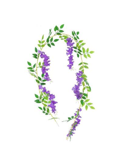 1 Pack Of 2m Long 10pcs Artificial Wisteria Flower Vine (With Cloth, Plastic & Iron Wire Material), Distinct Veins & Natural Color, Shapeable With Wire Inside - Purple - View 1