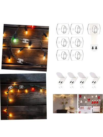 1 Pack Large Size Clip-On Lamp Hooks, Damage-Free Hanging String Lights Hooks With Adhesive Strips, Transparent Wall Clips Suitable For Indoor/Outdoor Hanging Lights, Christmas Decor And Wires, 6 Transparent Clips And 6 Adhesive Strips - Multicolor - View 10