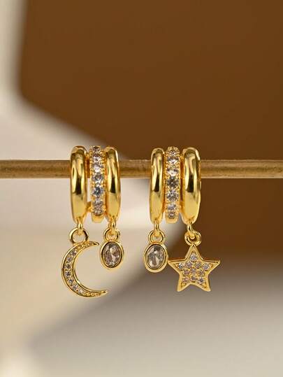 1 Pair 18K Gold Plated Elegant & Cute Copper Earrings, Suitable For Daily Wear And Gatherings - Gold - View 5