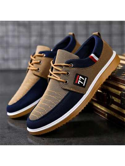 1 Pair 2025 New Men's Multipurpose Canvas Shoes, Fashionable Casual Lace-Up Low-Top Outdoor Shoes For Business, Formal Wear And Daily Wear - Khaki - View 1