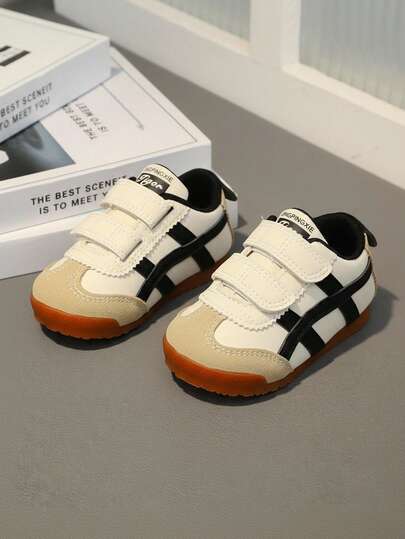 1 Pair Black Soft & Comfortable Leather Patchwork Infant/Toddler Kids' Athletic Shoes, Round Toe, Anti-Kick, Non-Slip Sole, Fashion Casual Sneakers, Suitable For Baby Boys/Girls, Everyday/Running, Autumn/Winter - Black - View 1