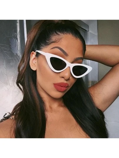 1 Pair Cat Eye Fashion Glasses, Retro Triangle Small Frame Glasses, Popular Social Media Style Preppy Style For Back To School - White - View 1
