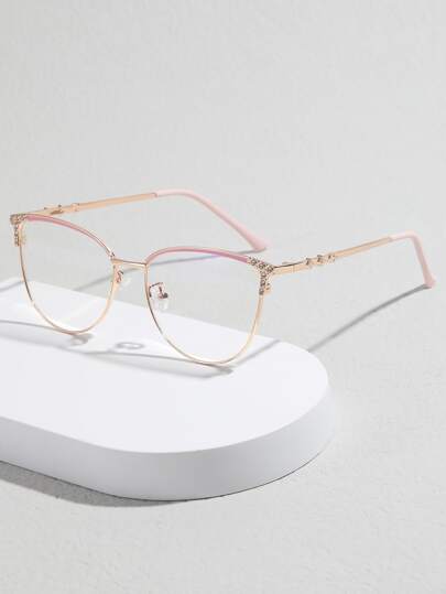 1 Pair Cat Eye Metal Frame Fashion Clear Lens Glasses - Baby Pink - View 1