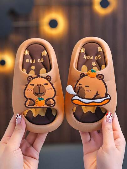 1 Pair Children's Summer PVC Indoor Slippers With Cute Animal Capybara Printed Swim Ring Design - Coffee Brown - View 1
