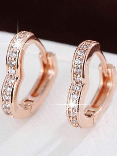 1 Pair Copper Alloy Simple Fashion Cubic Zirconia Inlaid Heart Shaped Earrings - Earrings - View 1