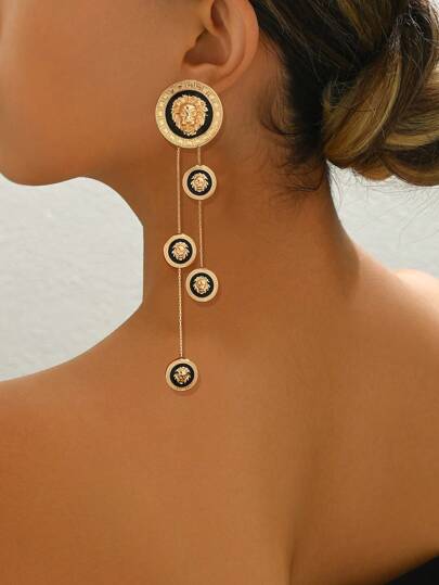 1 Pair Creative Lion Head Tassel Drop Earrings, Autumn/Winter New Arrivals - Yellow Gold - View 1