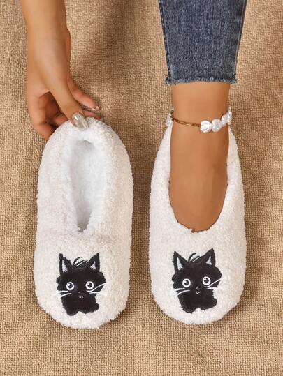 RALSWNAY Fall/Winter 1 Pair Cute Cat Polyester Cartoon Home Slippers, Suitable For Office, Home, Vacation In Spring/Summer - White - View 1
