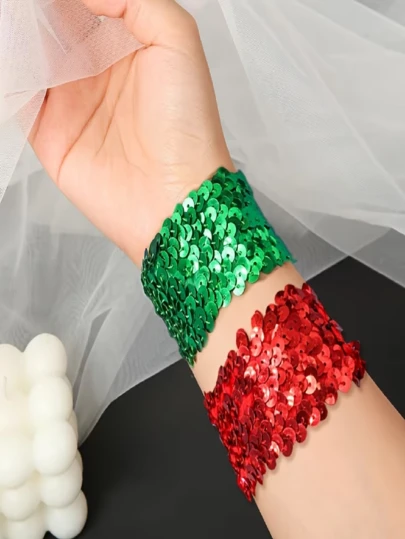1 Pair Elastic Sequin Bracelets, Fashionable Sparkling Party Decorations, Carnival Wristbands, Stretchy Sequin Wristlets For Festivals, Dance Costumes, Suitable For Parties, Festivals, Carnivals, Dancing, Halloween, Cosplay And More - Multicolor - View 1